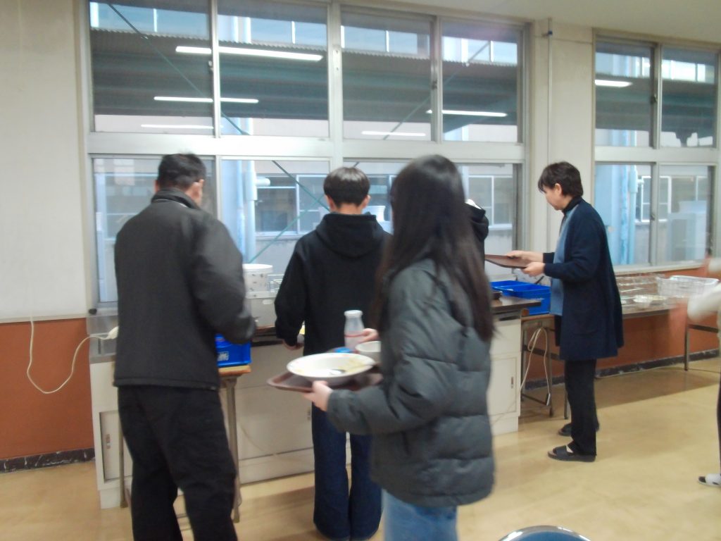 本日はこまき中学校で初めての給食の時間がありました。給食を希望した生徒の皆さんと一緒に温かい給食をいただきました。
